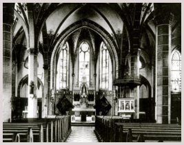 Seitenschiffen, dem Chor und einer Empore. Leider war es dem Architekten nicht mehr vergönnt, die Fertigstellung seines Bau-