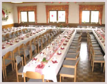 Räumlichkeiten für FesteGemeindehalleDie Gemeindehalle dient nicht nur für Großveranstaltungen, sonder bietet auch genügend Platz für Familienfeiern aller Art.Anfragen per Mail an IOrtsbürgermeister Mario Heinrichs:ortsgemeinde@langenfeld-vordereifel.de