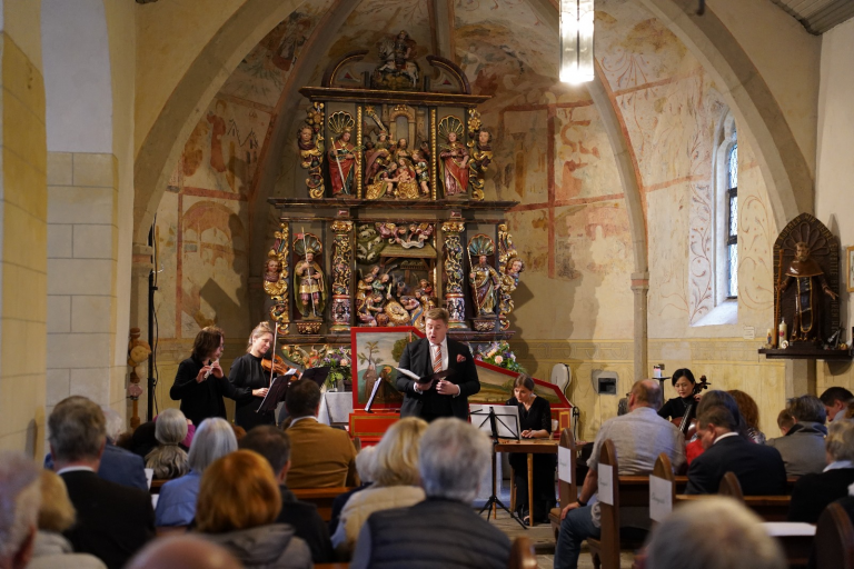 Die fast 600 Jahre alte Wallfahrtskapelle erzählt nicht nur von religiöser Tradition, sondern auch von architektonischer Schönheit. Ihr barocker Tuffstein-Altar bildet den geistlichen und optischen Mittelpunkt des Raumes. Doch es ist vor allem die besondere Akustik des kleinen Sakralbaus, die das Konzerterlebnis so außergewöhnlich macht.