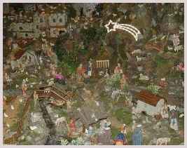 Rund 20 Quadratmeter große Weihnachtskrippe in LangenfeldHobbybastler Walter Schäfer gestaltet die Garage zu einer weihnachtlichen Szene um.Im Mittelpunkt der riesigen Weihnachtskrippe, die der Langenfelder Walter Schäfer in monatelanger Arbeit mit Hammer, Nägeln und Säge in seiner Garage aufgebaut hat, steht die Geburtsstunde Jesu Christi. Das Umfeld des Stalles von Bethlehem mit ca. 300 Schafen, 60 Hirten und sieben Lagerfeuern sowie einen Bachlauf ist sehr beeindruckend. Die zahlreichen Häuser und Burgen sind in liebevoller Kleinstarbeit reich mit heimischen Natursteinen verziert. Für die Gestaltung der Landschaft hat Hobbybastler Walter Schäfer Wurzelstränge, Moos und Hölzer aus heimischen Wäldern verarbeitet. Viele Besucher aus der Umgebung und sogar aus Köln und Bonn schauten in Langenfeld vorbei und staunten nicht schlecht, über die Dimension, der auf mehreren Ebenen bis unter das Garagendach reichenden Weihnachtskrippe.