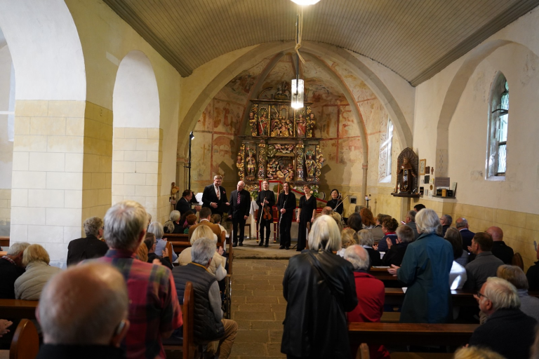 Die fast 600 Jahre alte Wallfahrtskapelle erzählt nicht nur von religiöser Tradition, sondern auch von architektonischer Schönheit. Ihr barocker Tuffstein-Altar bildet den geistlichen und optischen Mittelpunkt des Raumes. Doch es ist vor allem die besondere Akustik des kleinen Sakralbaus, die das Konzerterlebnis so außergewöhnlich macht.